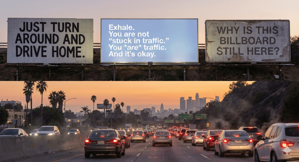 You are not “stuck in traffic.” You are traffic. And it’s okay.